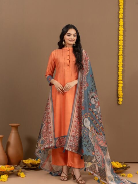 Exquisite Maharani Kalamkari Dupatta for a Regal Look
