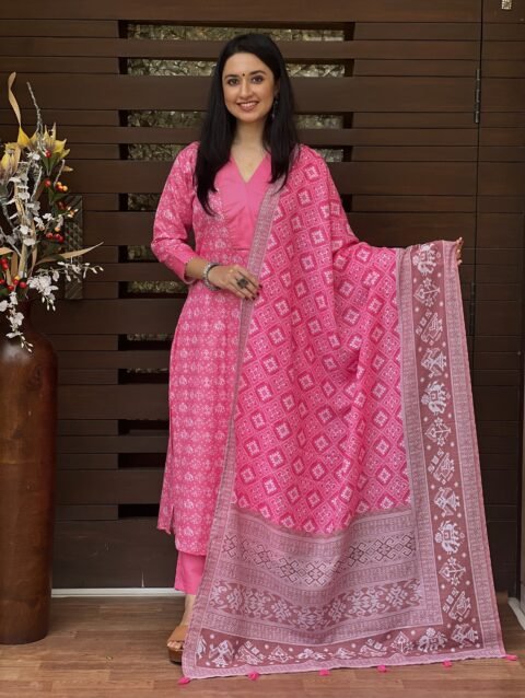 Elegant Pink Patola Suit Ensemble