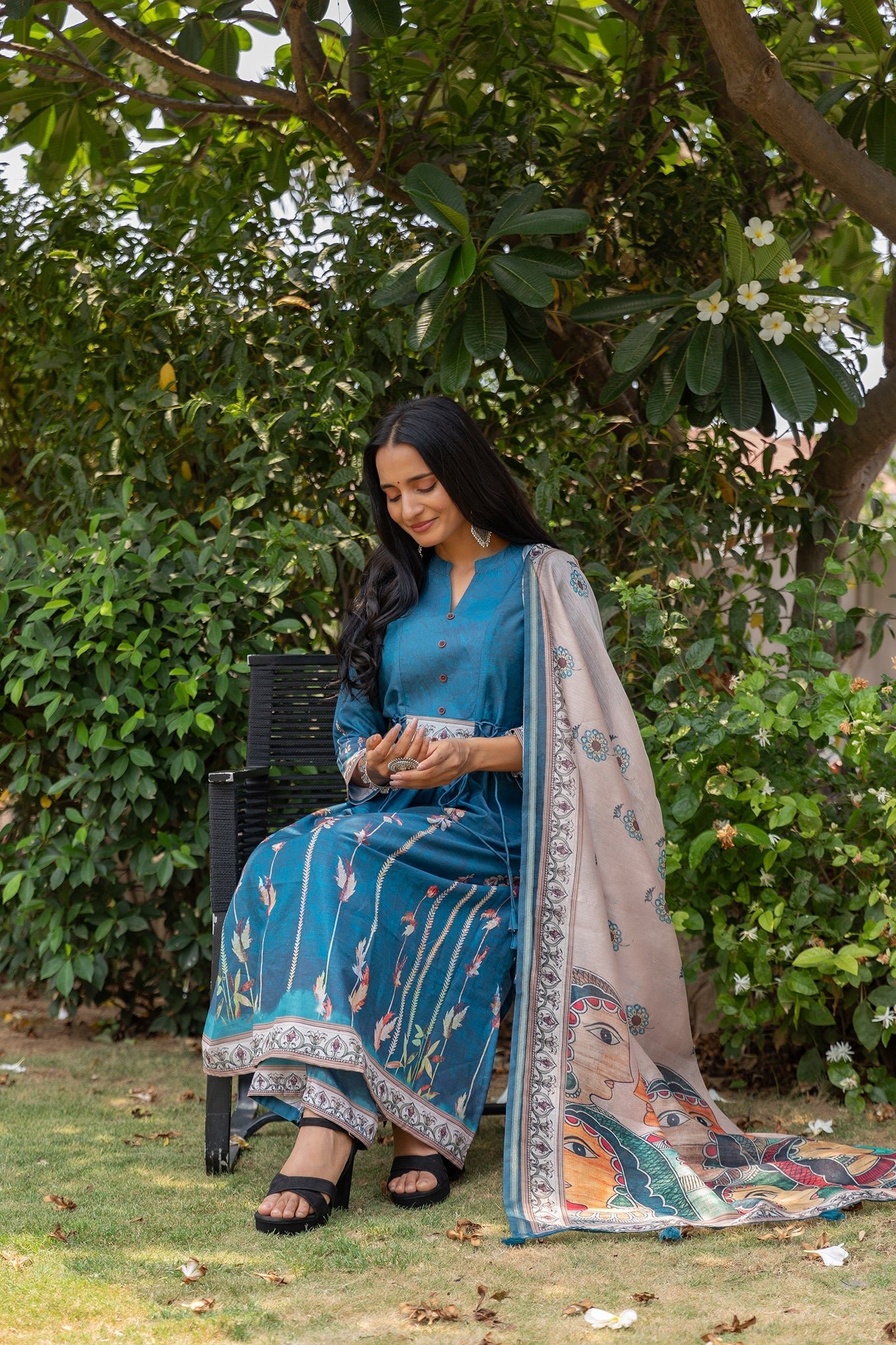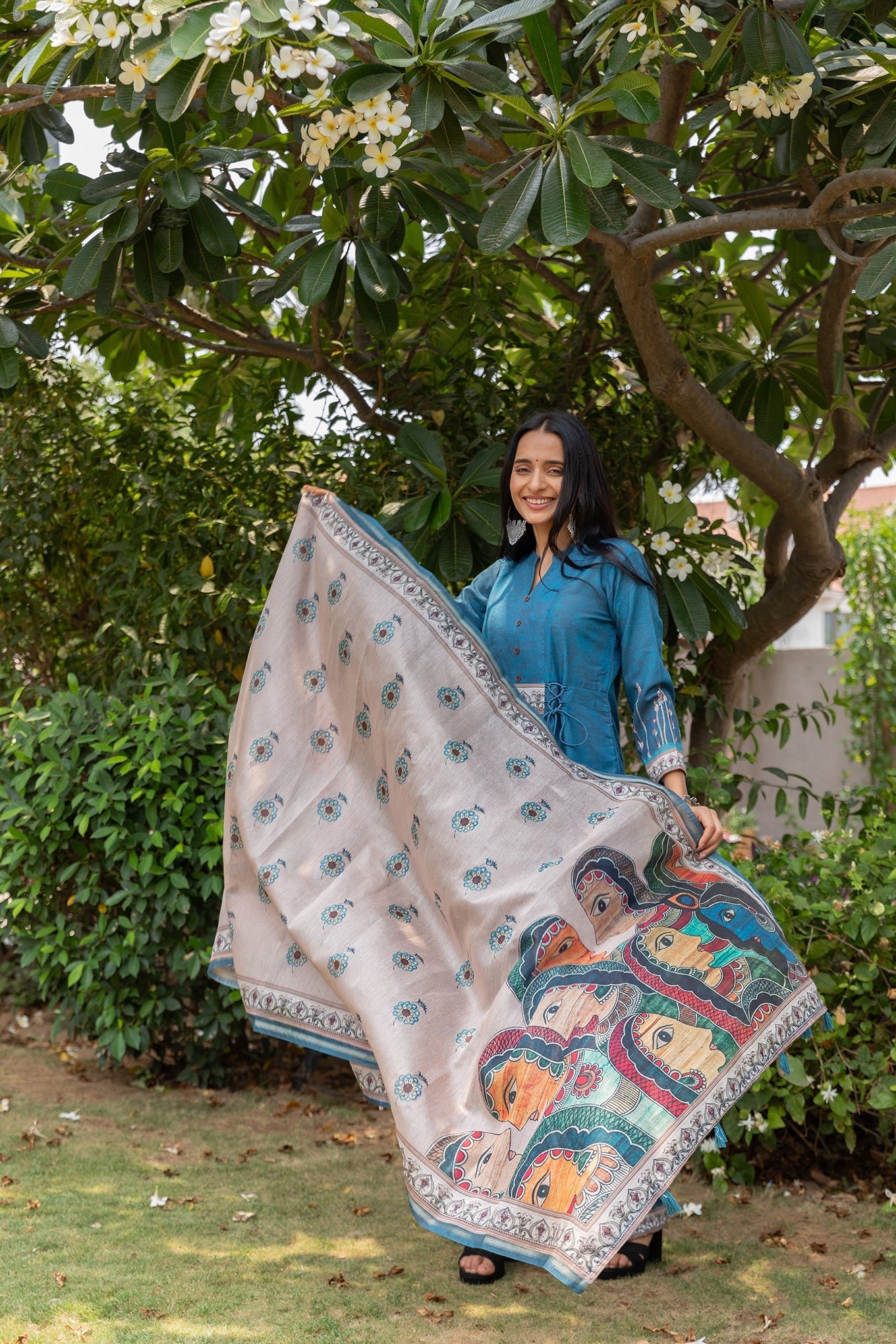 Fabric details : Muslin Cotton Kurta & Pant with handloom cotton silk Dupatta.