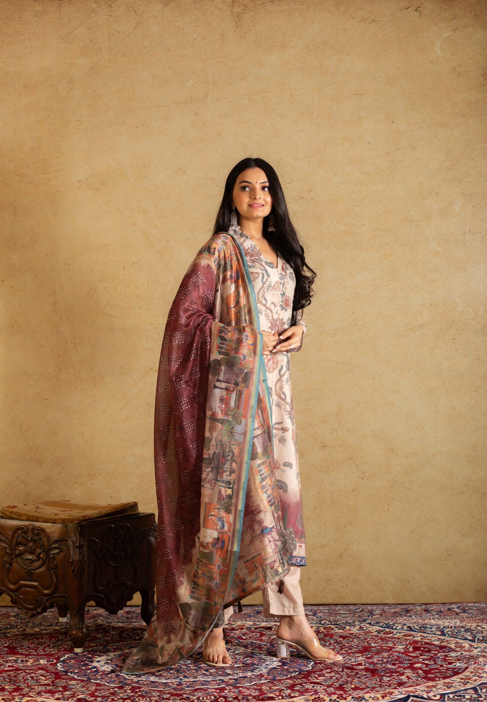 This gorgeous digitally printed dupatta Will be a perfect addition to your ethnic collection. The bandhej print adds to the beauty of this concept. Flowers gracing the border of the dupatta, like nature’s delicate touch. This dupatta is trendy yet a classic addition to your wardrobe.