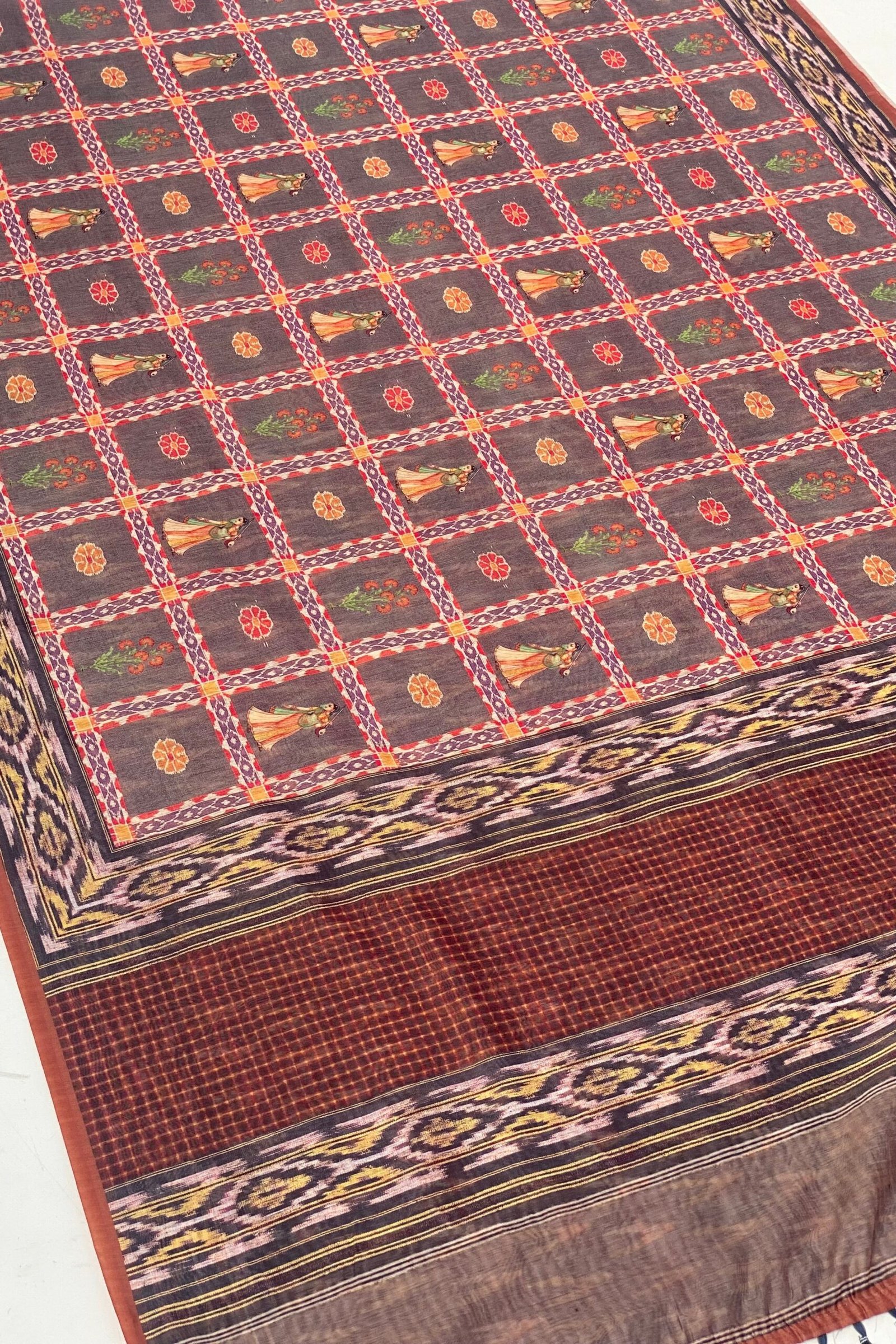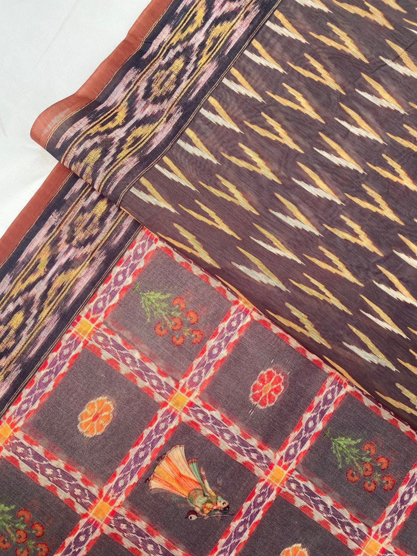 Discover the elegance of our latest Chanderi cotton sarees, now featuring exquisite figure prints in a vibrant brown hue. Each saree is adorned with a stunning pallu crafted in intricate patola prints.