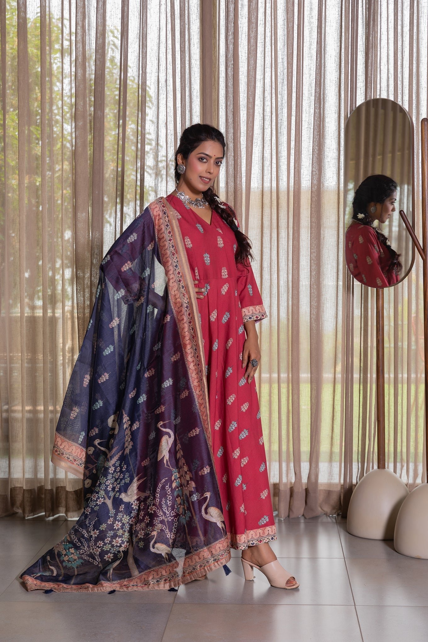 This gorgeous digitally printed dupatta Will be a perfect addition to your ethnic collection. The pichwai print adds to the beauty of this concept. This dupatta is trendy yet a classic addition to your wardrobe.