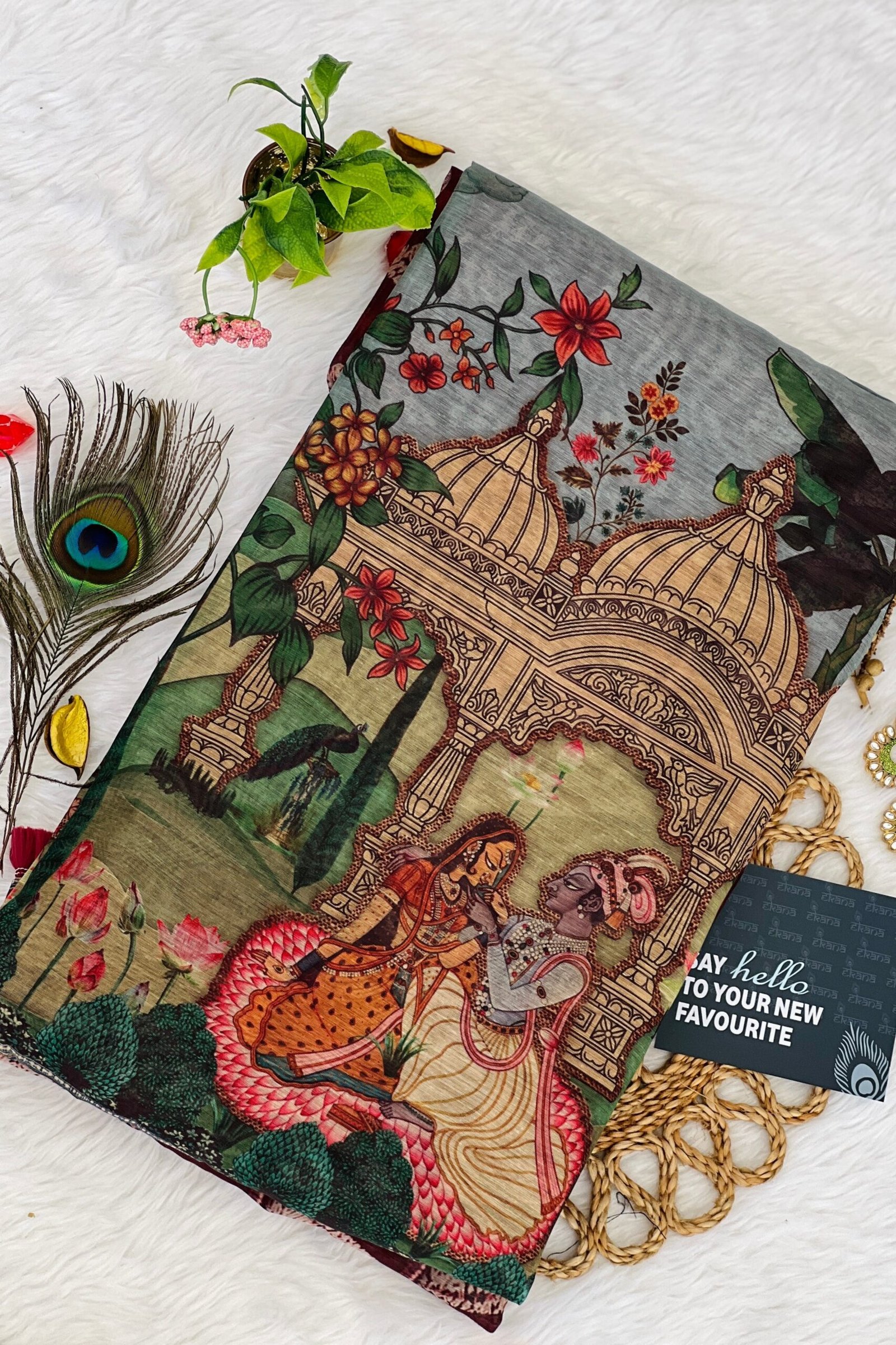 Introducing our latest saree marvel! Picture this: a blend of geometric and pichwai prints in mesmerizing shades of red. The body showcases the intricate geometric design, while the pallu exudes the rich charm of a pichwai. Plus, it comes with an unstitched blouse for your personal touch. Elevate your style effortlessly with this stunning ensemble!