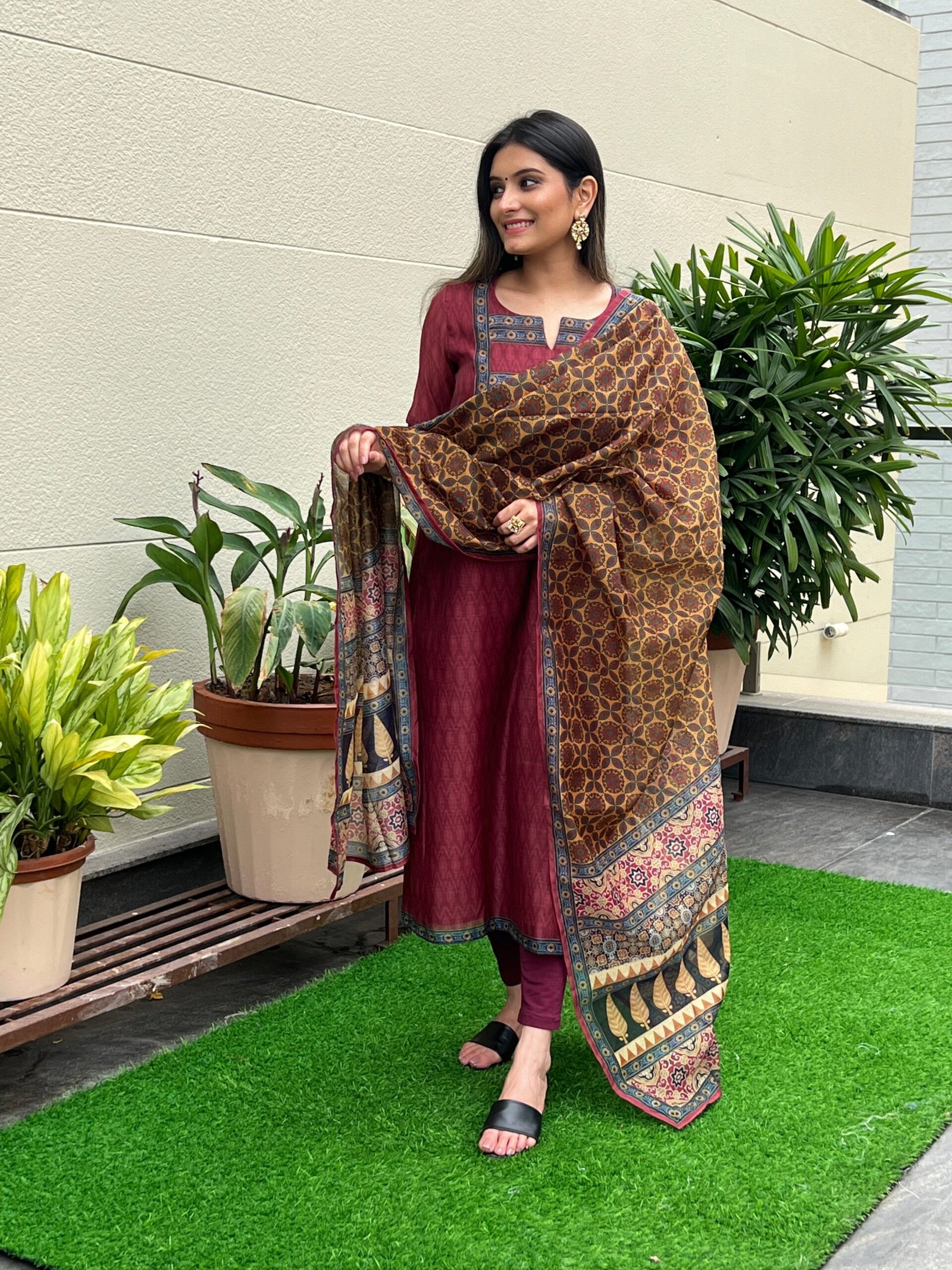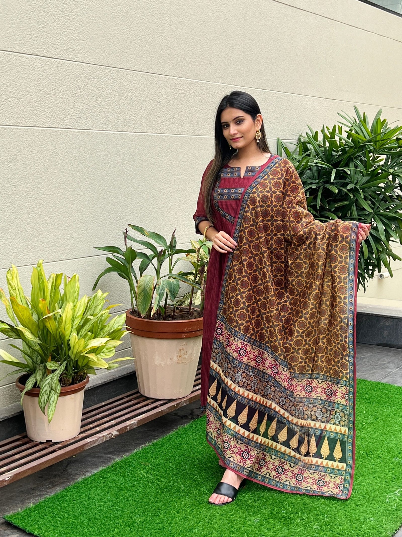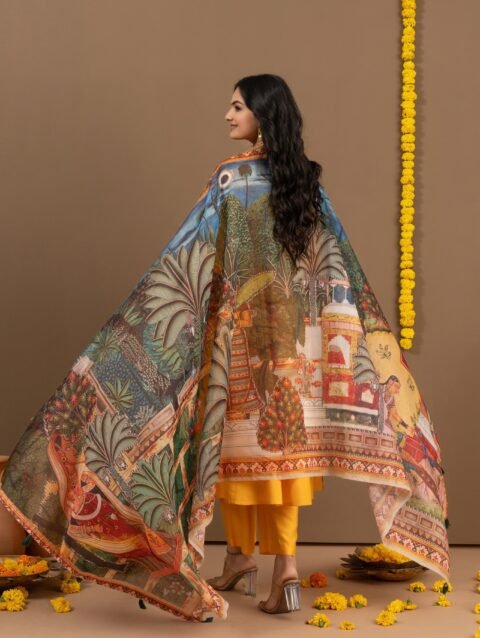 This gorgeous digitally printed dupatta Will be a perfect addition to your ethnic collection. The ajrakh print adds to the beauty of this concept. This dupatta is trendy yet a classic addition to your wardrobe.