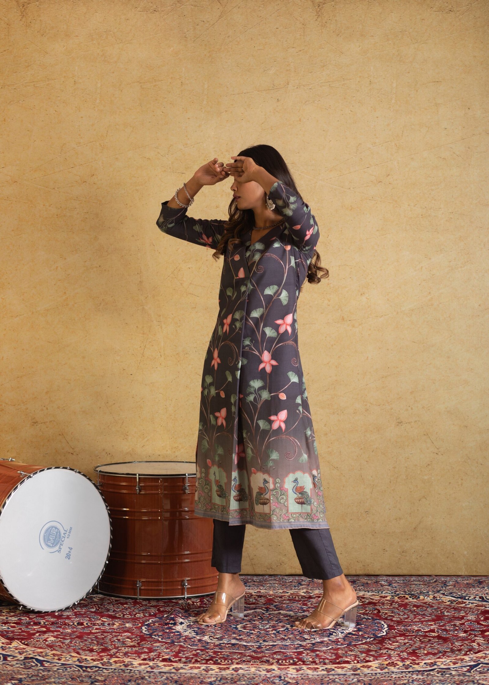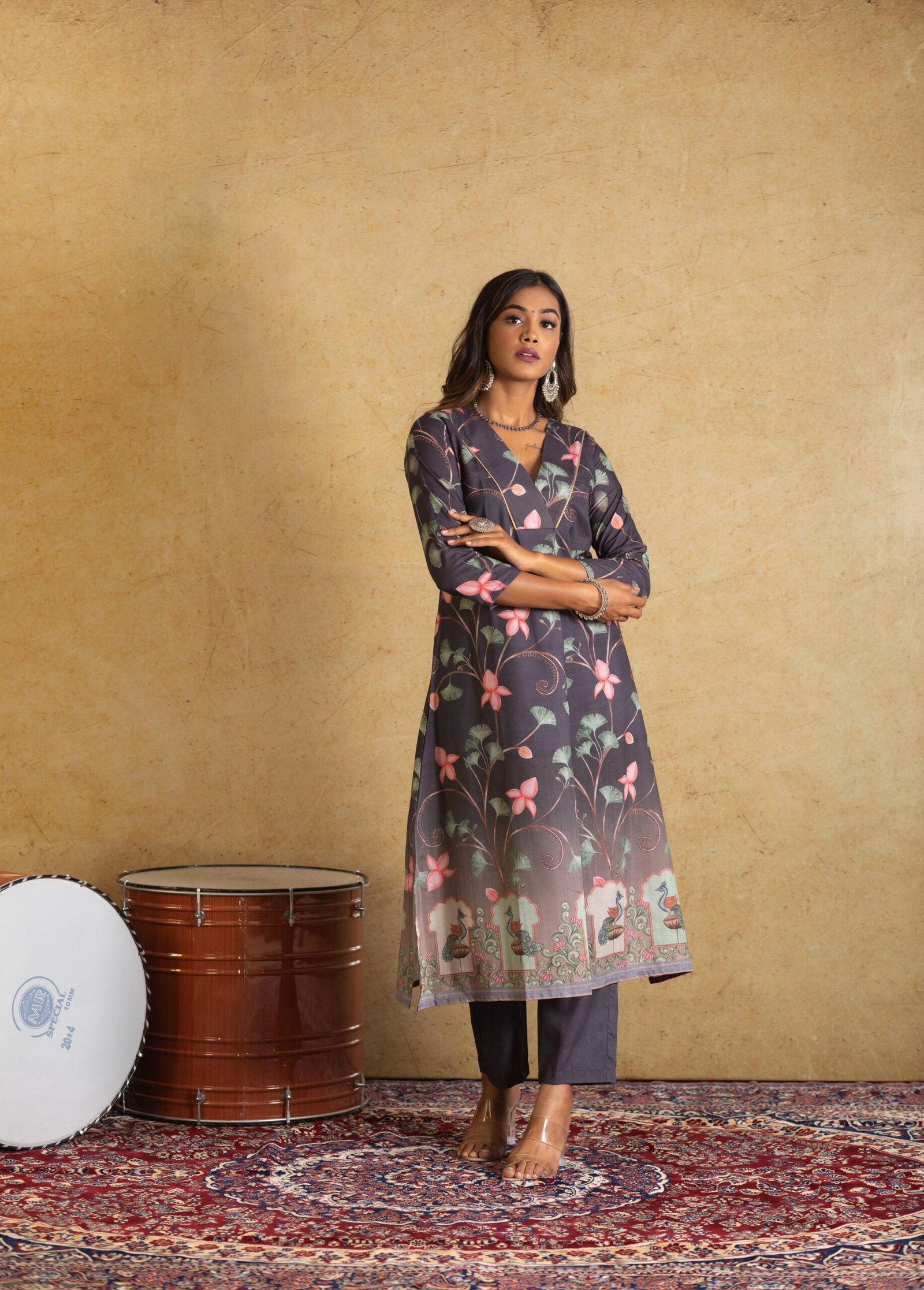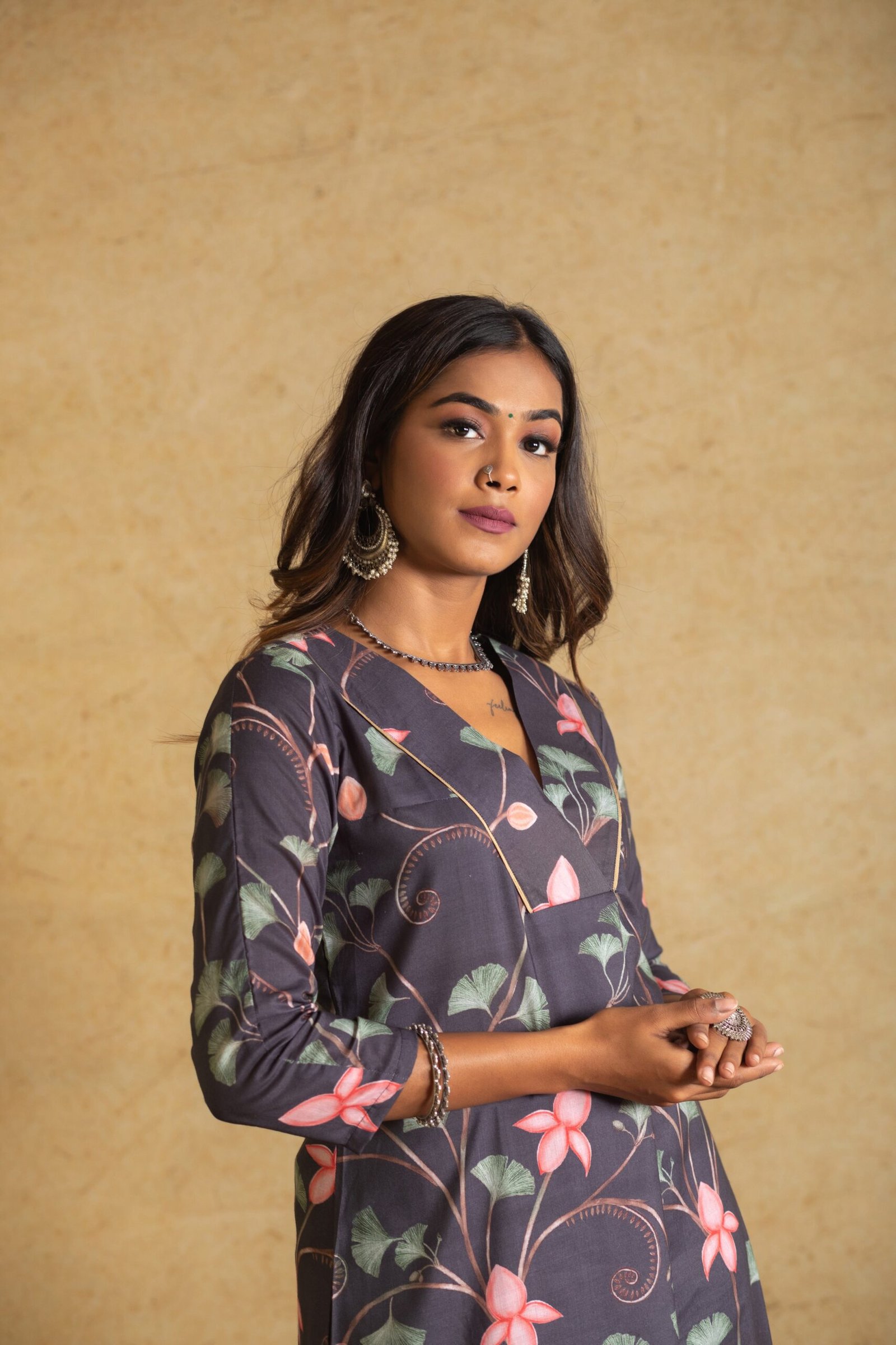 Discover understated elegance with our Black Pichwai Print Kurta Set, featuring a stylish V-neck design. Embrace the charm of Pichwai artistry woven into every detail. Elevate your ethnic ensemble effortlessly.