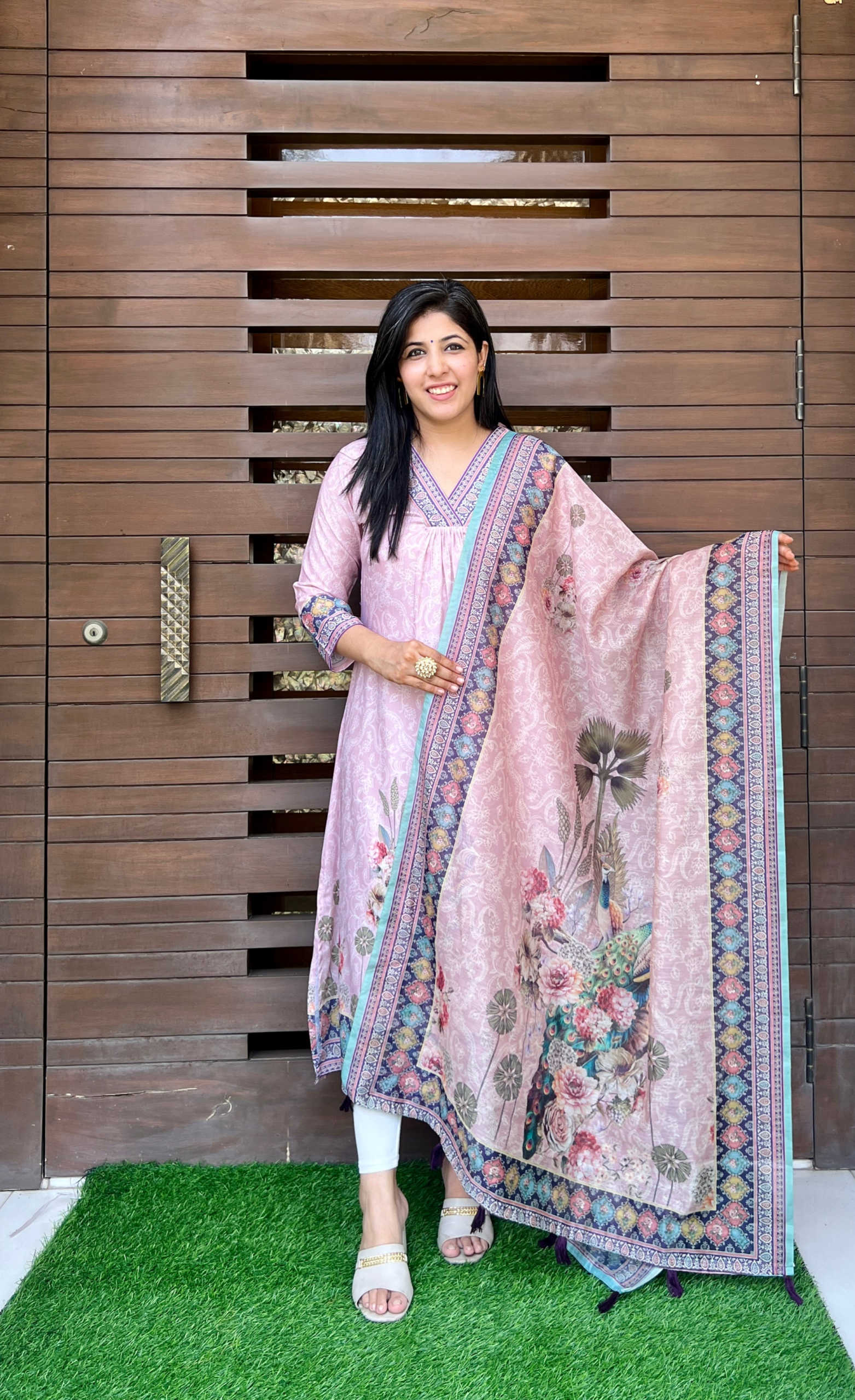 This gorgeous digitally printed dupatta Will be a perfect addition to your ethnic collection. The Pichwai print adds to the beauty of this concept. This dupatta is trendy yet a classic addition to your wardrobe.