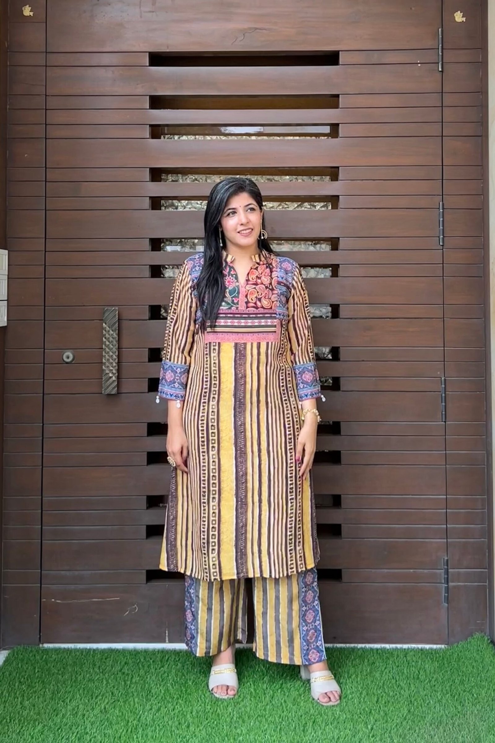 Introducing our latest addition – a stunning yellow kurta set crafted from the finest soft crepe fabric. This kurta set features a stylish collar neck design and exquisite pearl on the sleeves, adding a touch of elegance and charm. Perfect for any occasion, this outfit combines comfort and sophistication, making it a must-have for your wardrobe.