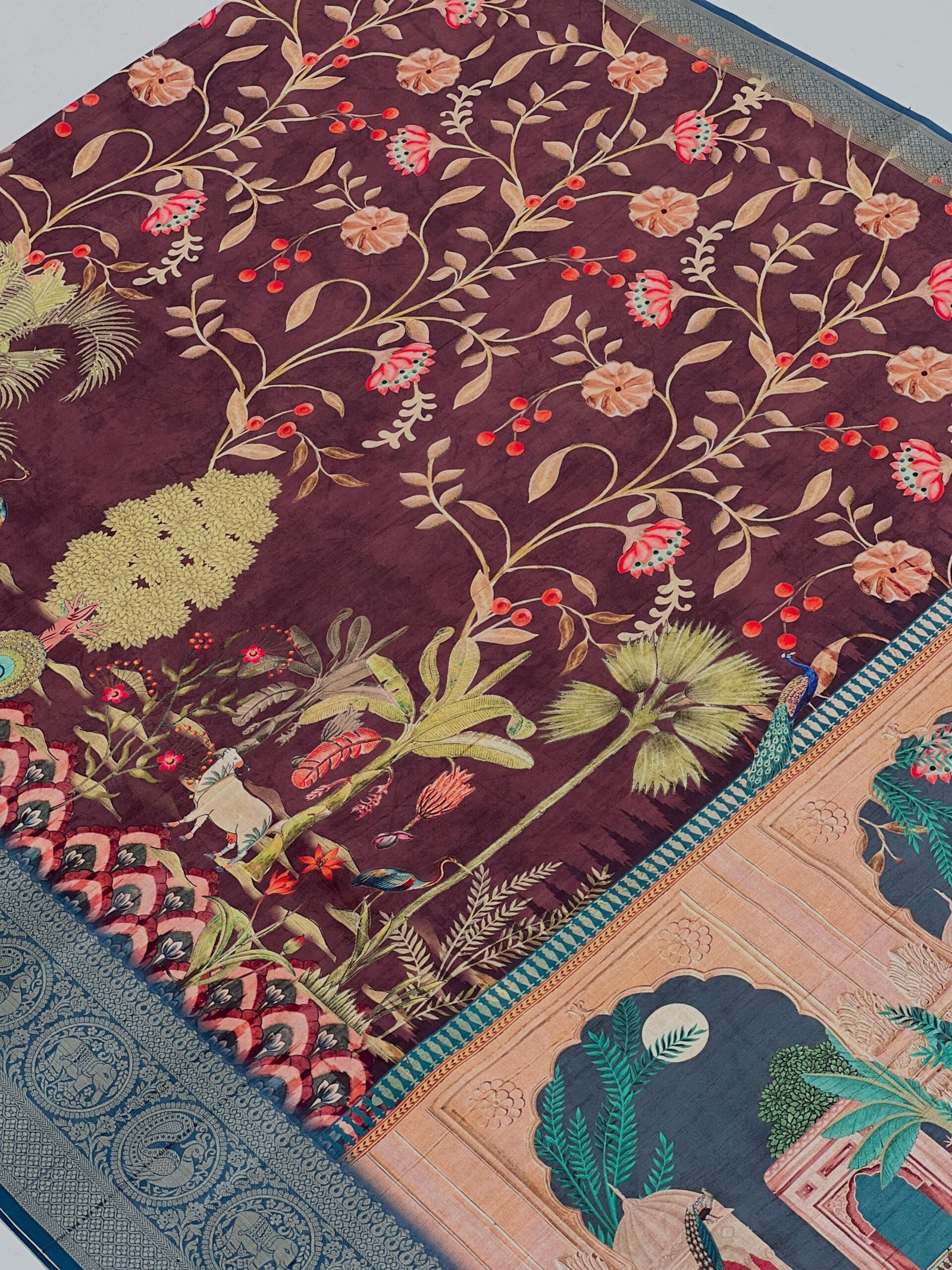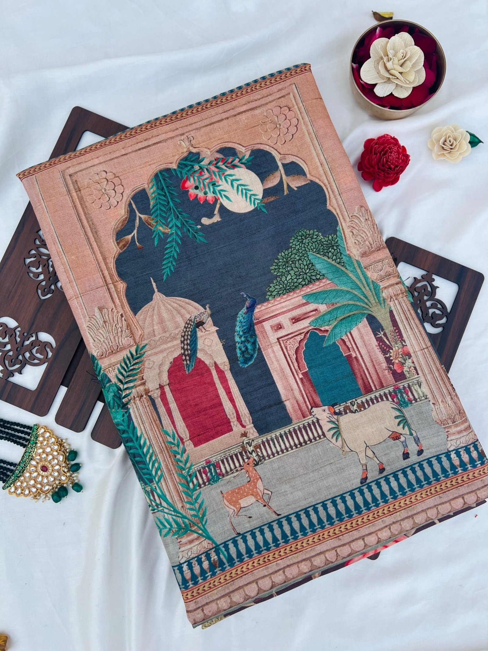 Saree Material: Crafted from Handloom Tussar Silk with jacquard broader this fabric is renowned for its softness, ease of draping. The saree comes with an unstitched blouse.
