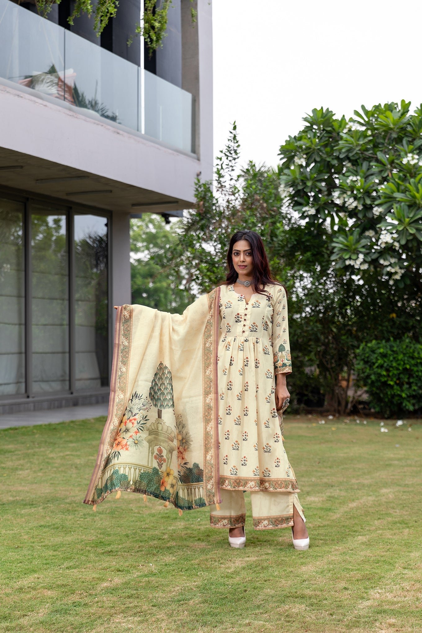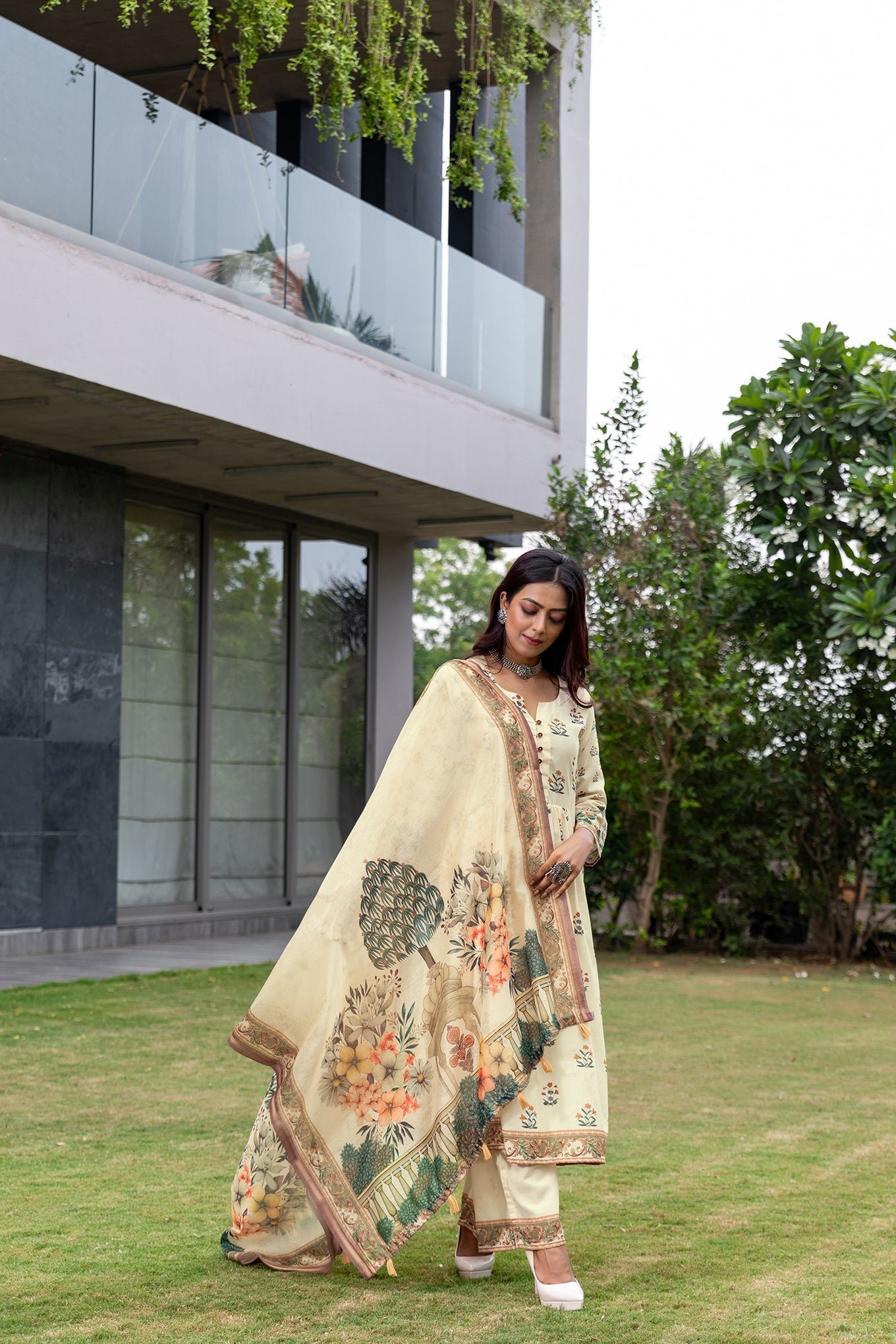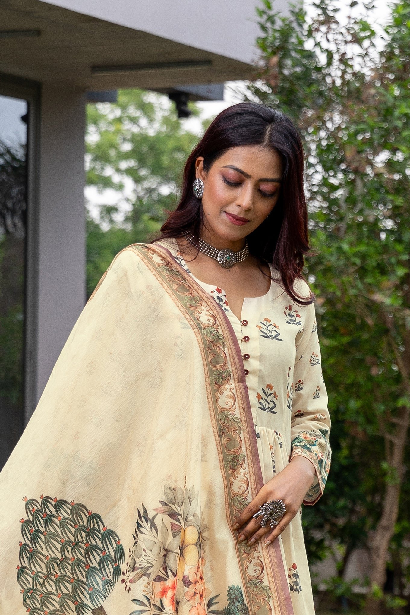 This gorgeous digitally printed dupatta Will be a perfect addition to your ethnic collection. The Pichwai print adds to the beauty of this concept. This dupatta is trendy yet a classic addition to your wardrobe.