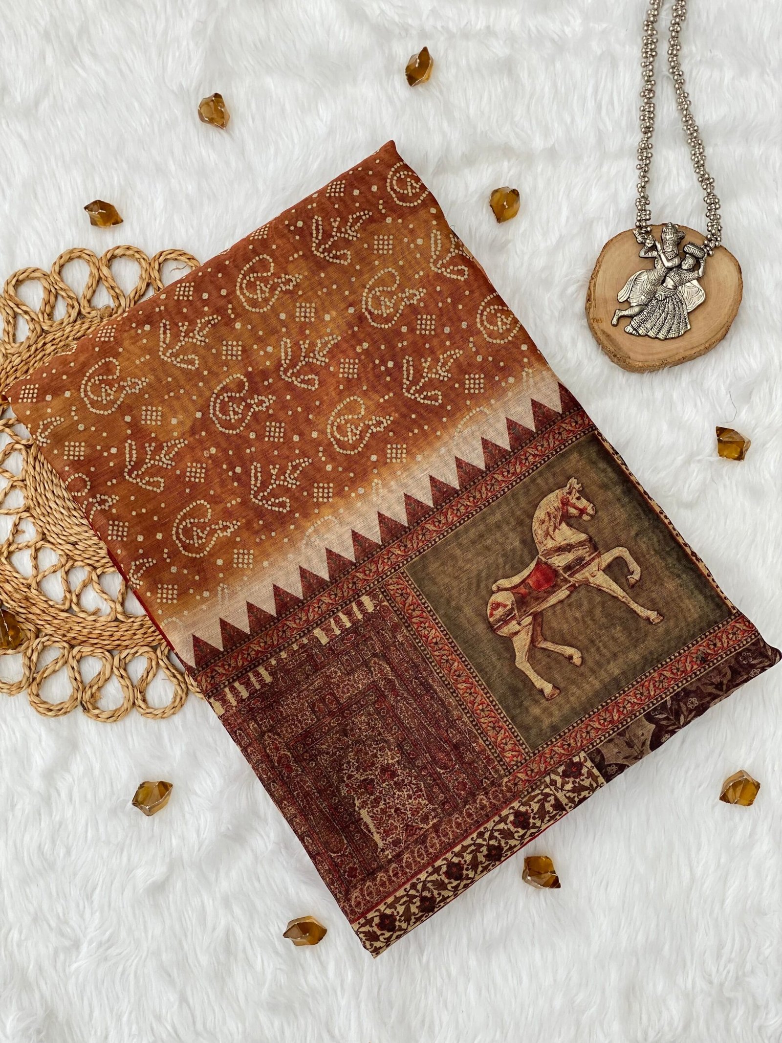 Be the first to review “Stunning Surajmukhi Bandhej Block Print Saree for Timeless Elegance”