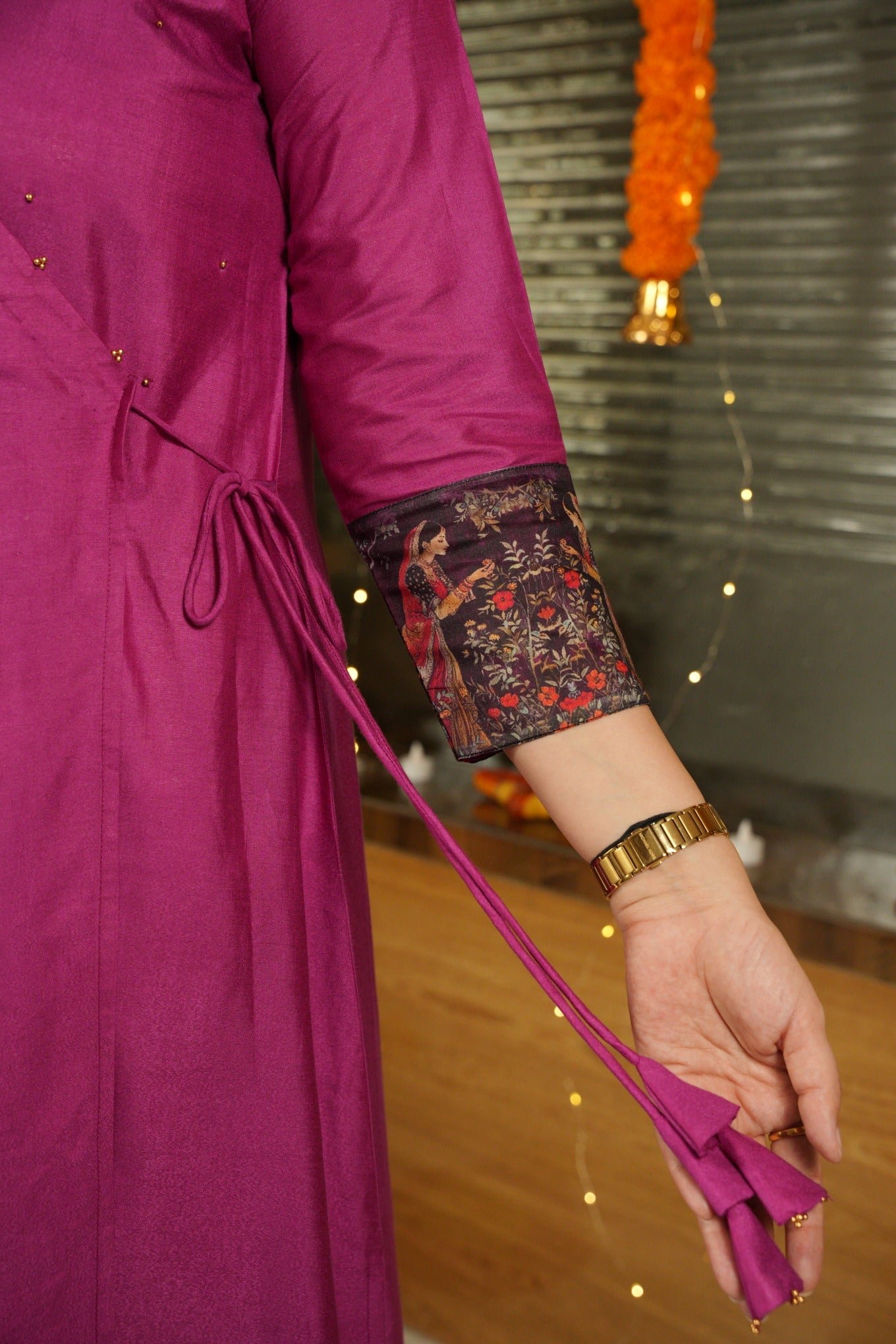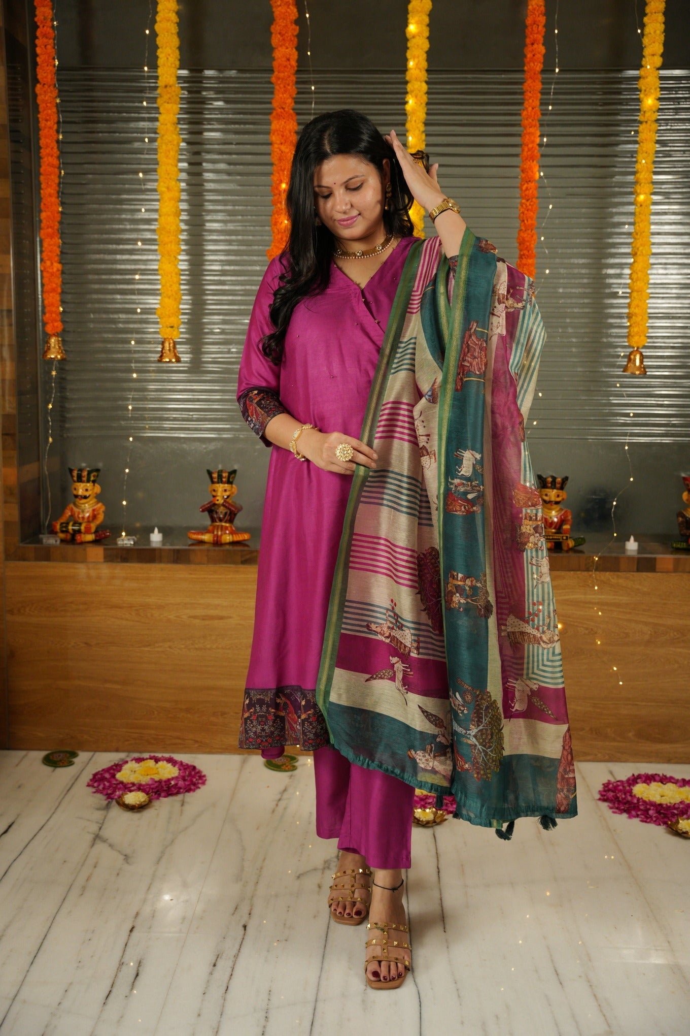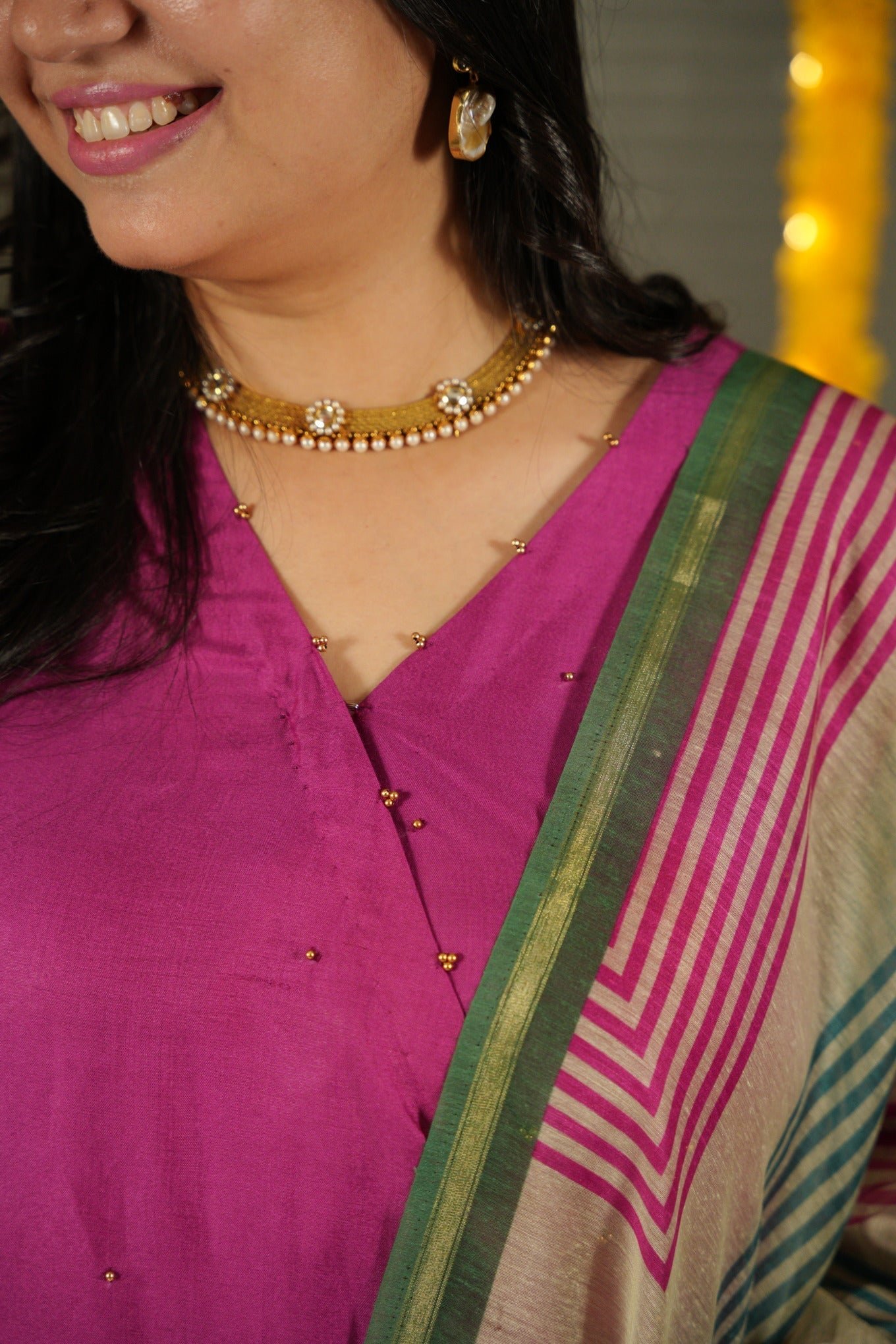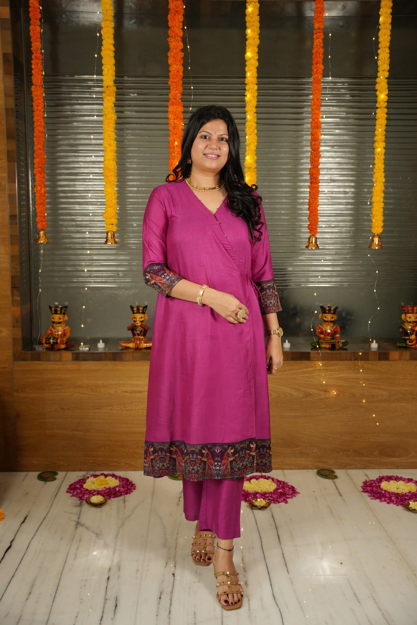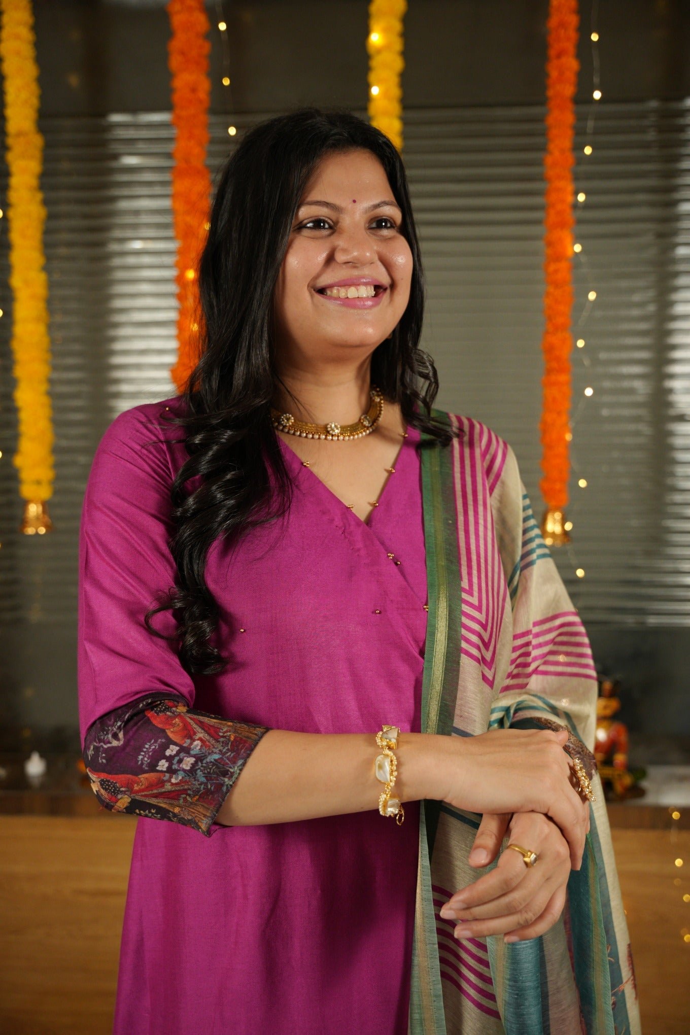 This gorgeous Angrakha pure bhagalpuri suit set is made with handcrafted fabric. Elevate your style with our exquisite dress featuring a delicate knot pattern adorning the left side of the kurta, adding a touch of charm and sophistication to your ensemble. The top and bottom are dyed with beautiful solid colours and come with a handloom cotton silk dupatta along with tassels on each end of the dupatta.